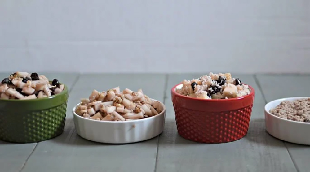 For a basic charoset, mix together 1 finely diced apple, 1 finely diced pear, 1 cup ground walnuts and ½ cup red wine.