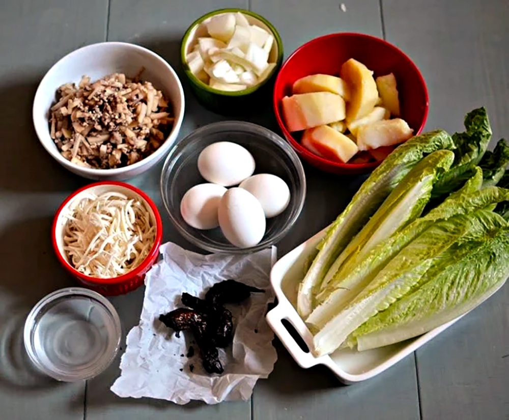 To prepare the lettuce, wash it well and check for bugs. I find the easiest way is to cut off the stem and place the leaves in a big bowl of water. Remove and check each leaf, and pat dry with a paper towel.